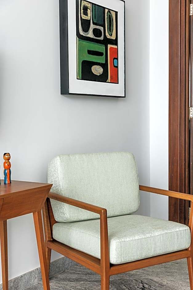 This sea-facing room is located on the corner of the first floor. It comes with a king sized bed, seating area, open wardrobe and private bathroom with a rain shower and free standing bathtub.